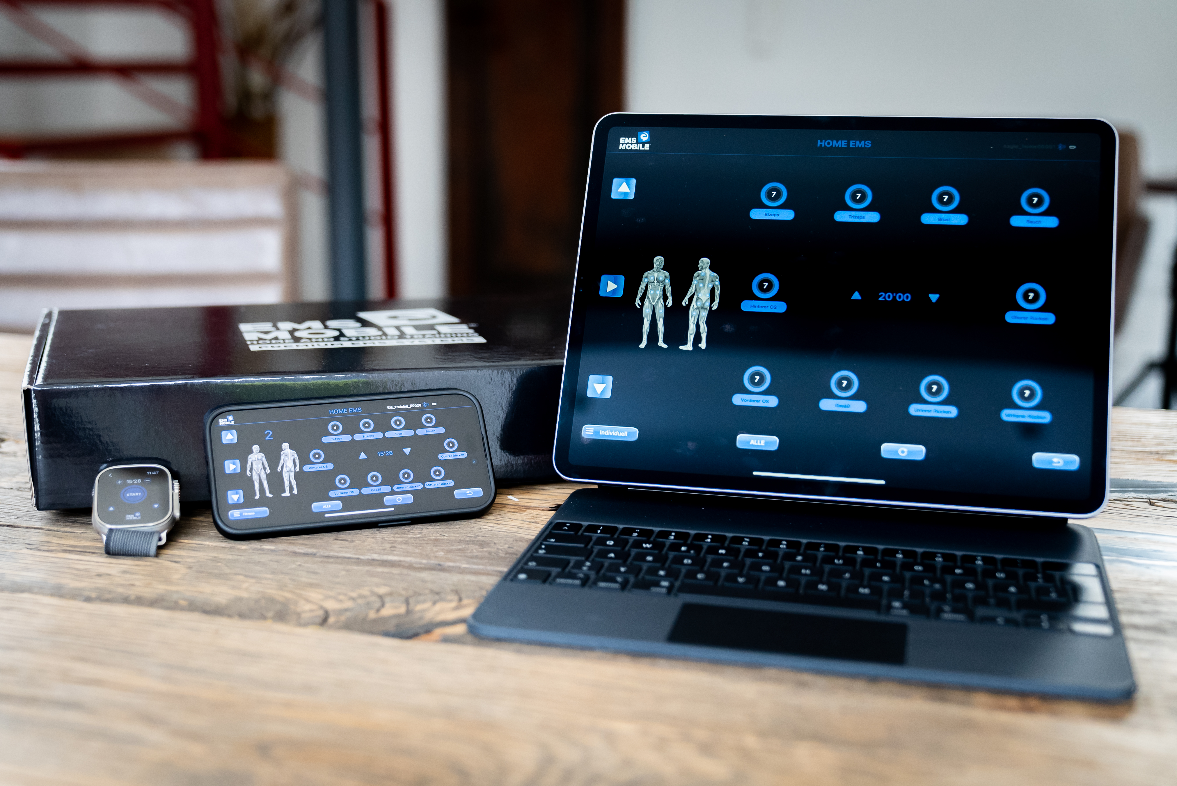 Mit EMS Mobile bringst du dein Training auf das nächste Level – unabhängig von Ort und Zeit. Durch modernste Elektromuskelstimulation (EMS) trainierst du alle wichtigen Muskelgruppen gleichzeitig, und das in nur 20 Minuten pro Einheit. Das mobile EMS-Training ermöglicht dir ein hocheffizientes Workout – direkt bei dir zu Hause, im Büro oder draußen an der frischen Luft.